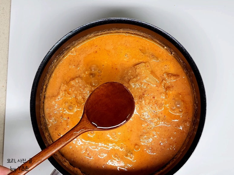 묵은 김치의 산미가 콩비지와 만나야 맛이 깊어요. 신 김치가 아니라면 식초 1T 넣어주셔도 좋아요.