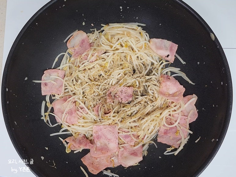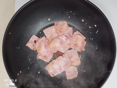 베이컨에서 기름이 나오면 따로 식용유를 넣지 않아도 충분해요.