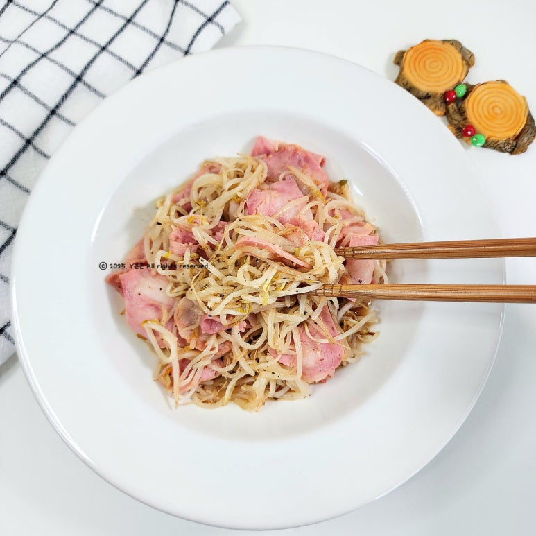 베이컨이 짠맛을 가지고 있어 간을 세게 하지 않으셔도 됩니다.