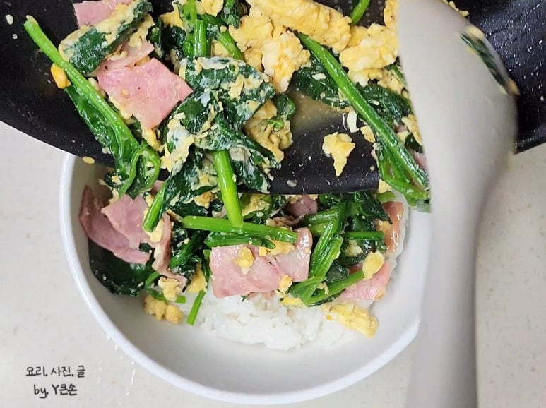 계란을 너무 익히면 퍽퍽하니 촉촉하게 마무리하는 게 포인트에요.
