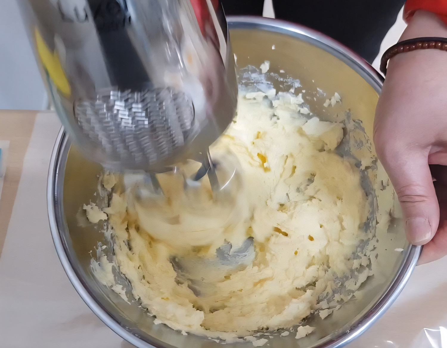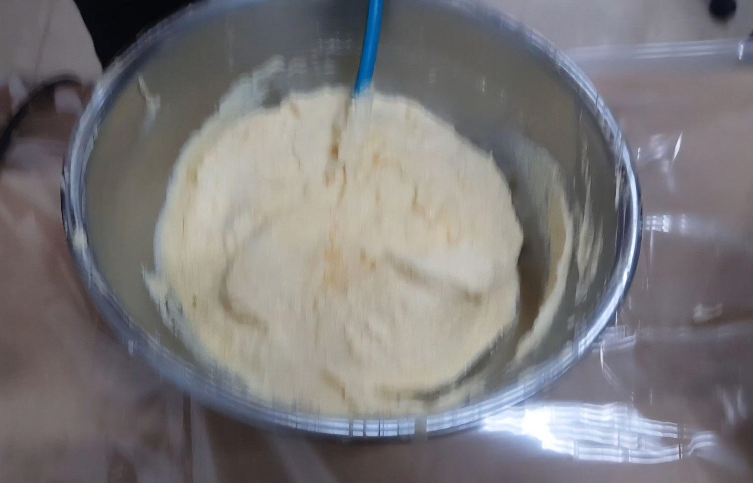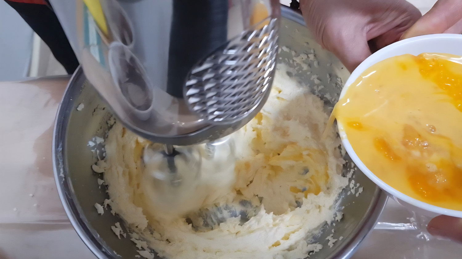달걀을 한 번에 다 넣으면 반죽이 분리될 수 있어요.