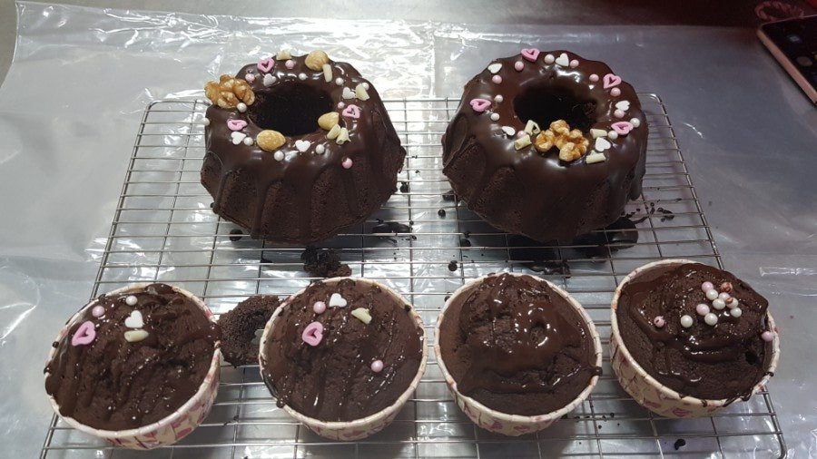 25분 정도 오븐에 구워서 익은는지 확인하려면 구워진 구겔호프를 하나 꺼내 젓가락으로 찔러 반죽이 묻어나지 않으면 익은 겁니다.