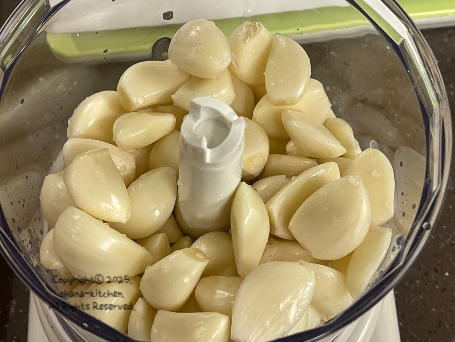 대파는 슬라이스하고 마늘은 넉넉하게 준비해 분쇄기에 넣고 굵직하게 갈아서 준비해 줬어요.