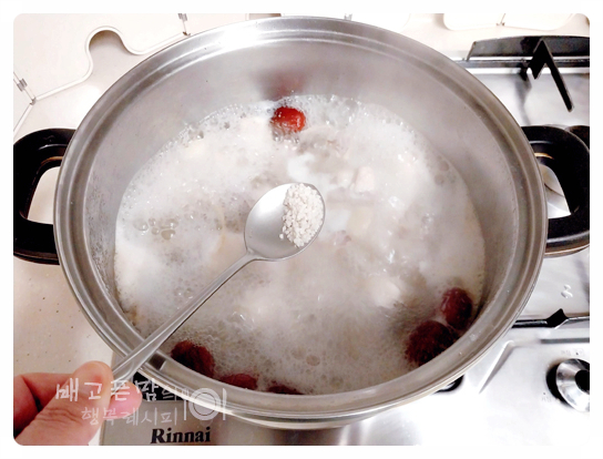 그리고 뚜껑을 닫고 센 불에서 끓이다