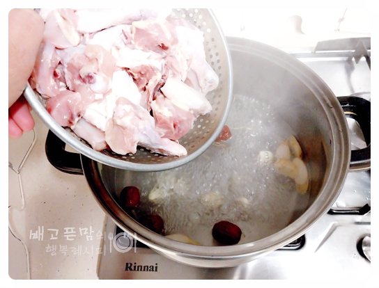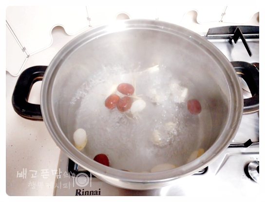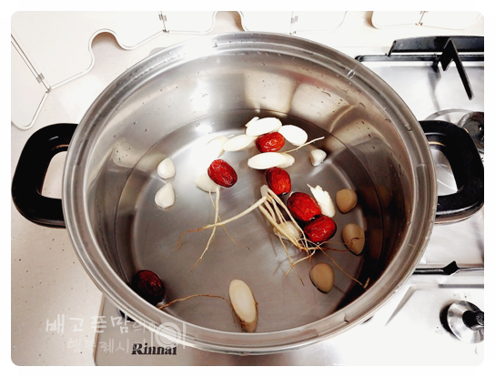 그리고 냄비에 손질한 수삼, 대추 마늘을 담고