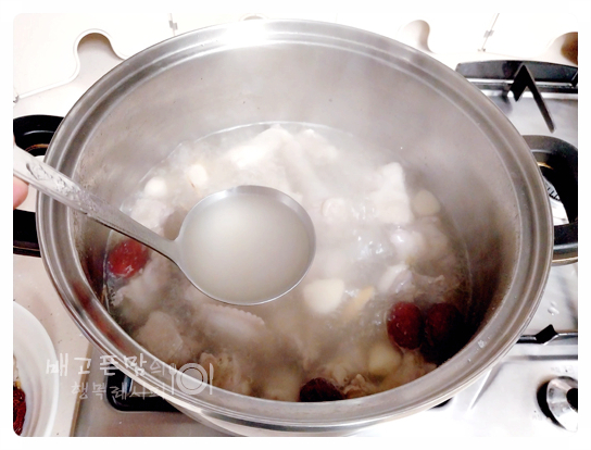 국물이 팔팔 끓으면 거품과 기름을 한번 걷어 내고