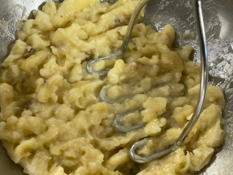 넓은 볼에 잘 익은 바나나를 넣고 부드럽게 으깨주세요.