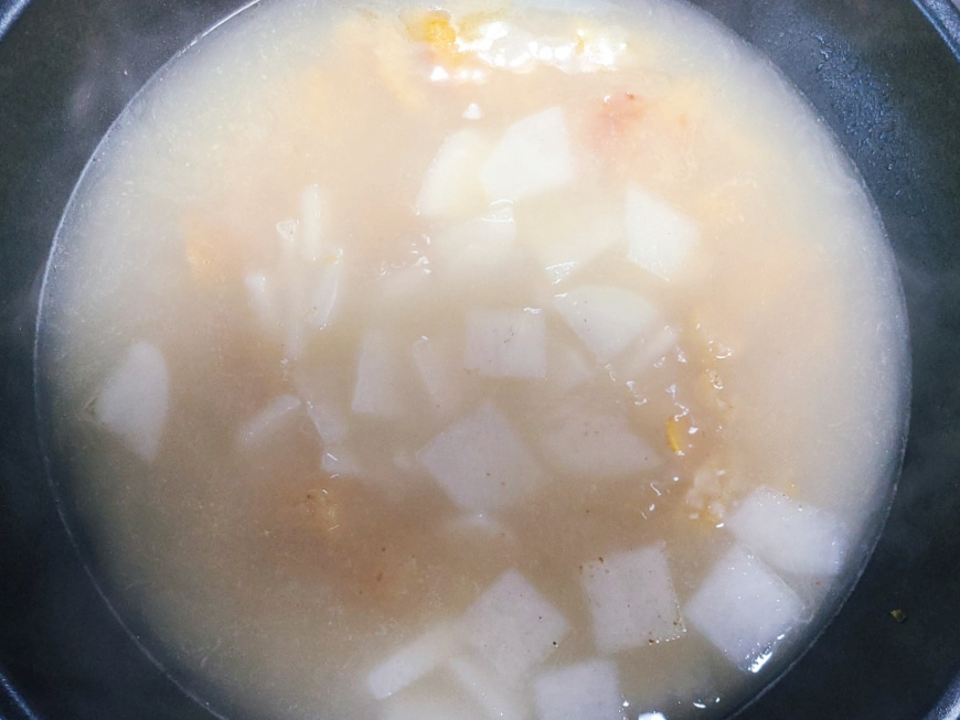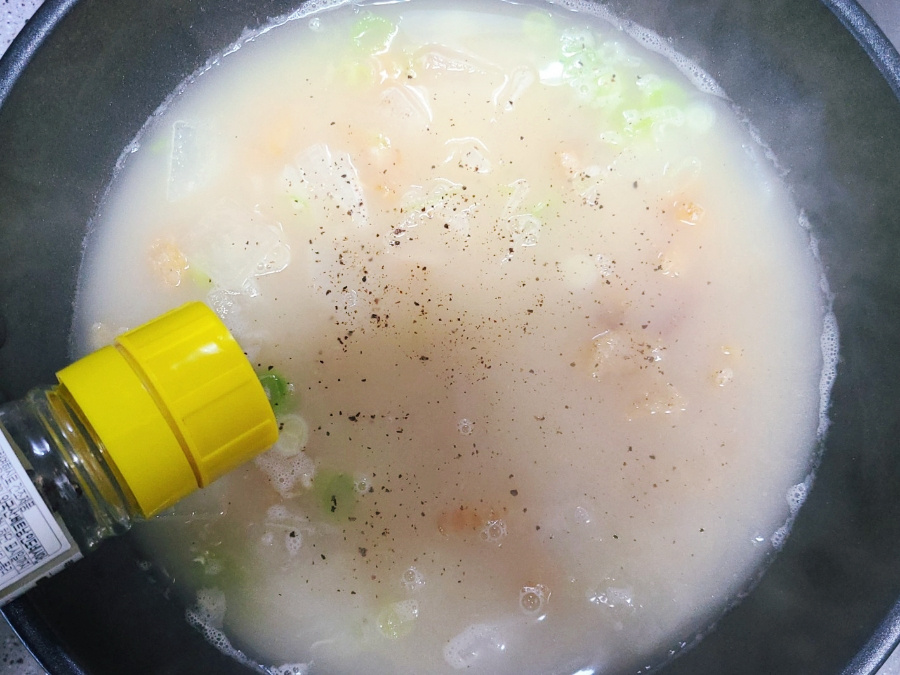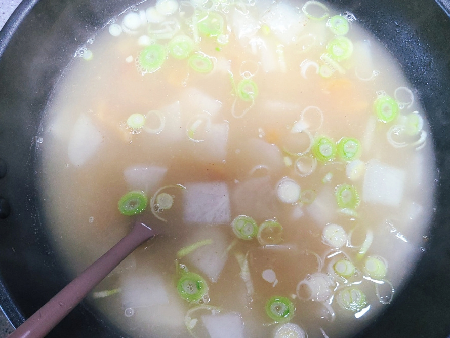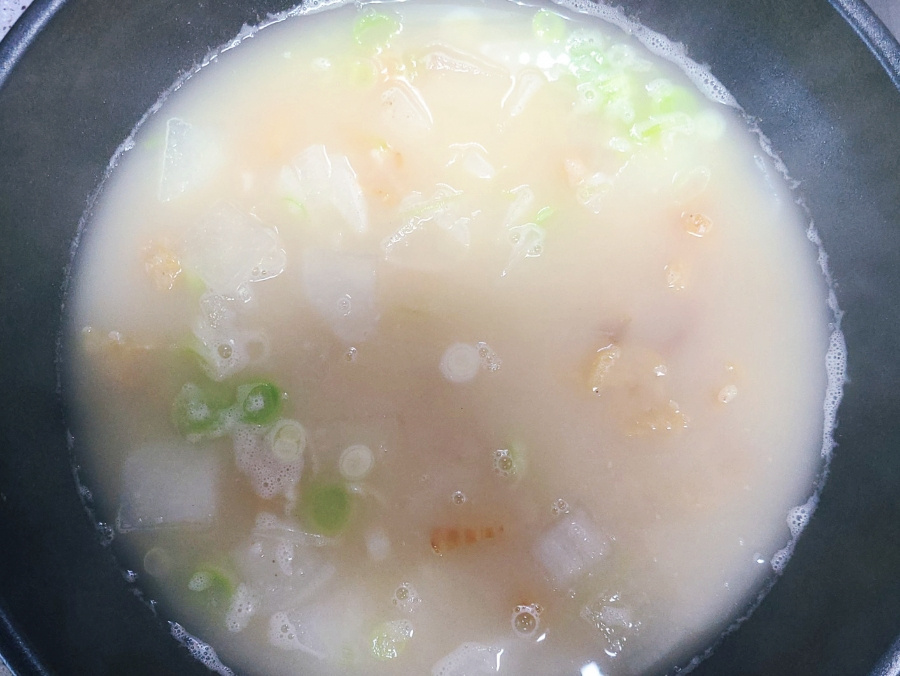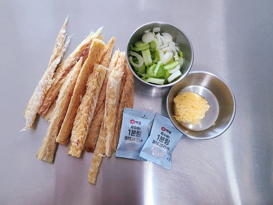 이번에 끓인 무 황태국은 예전과 다르게 국물이 사골국물처럼 뽀얗고 흰색이라서 짝꿍이 사골국물로 끓였냐고 물어봤는데 사골국물이 아닌 물과 동전육수로만 끓인거에요.