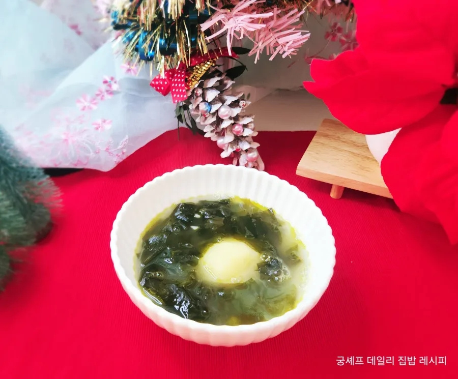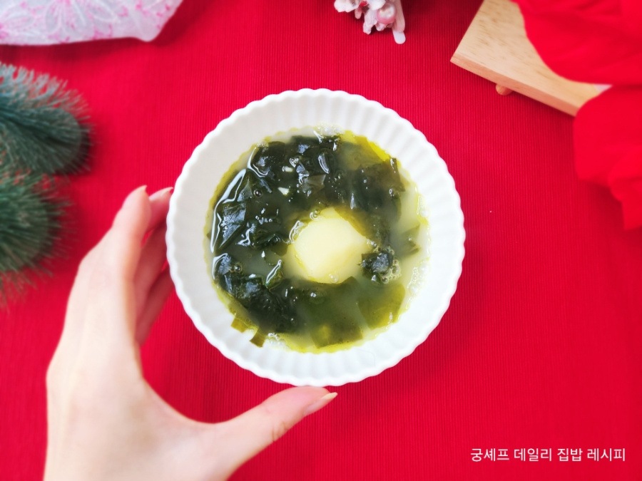 여러번 물을 나눠 넣고 끓여 미역을 우려 진한 맛을 내주는게 포인트예요.