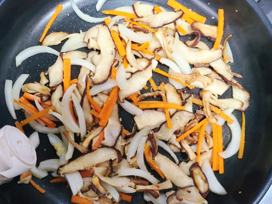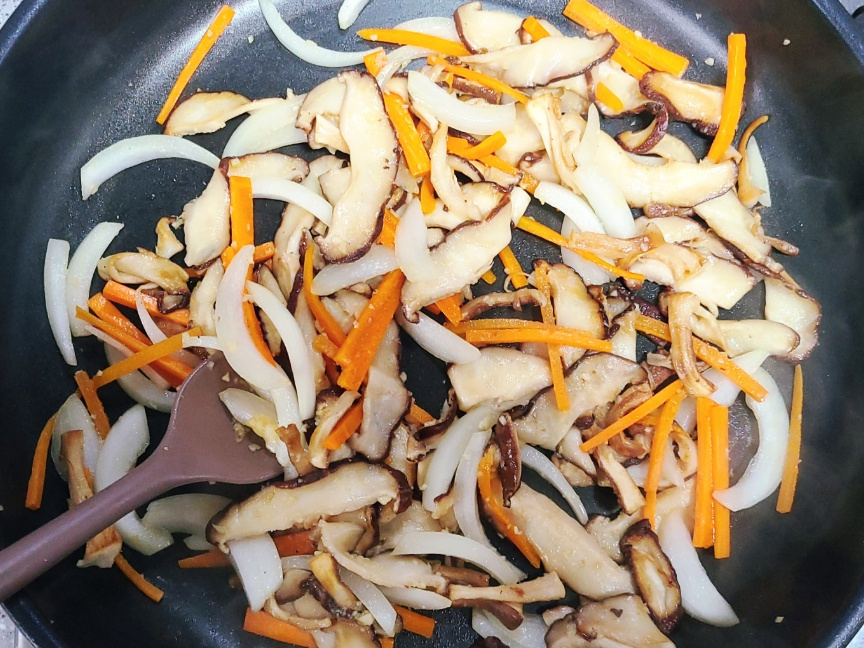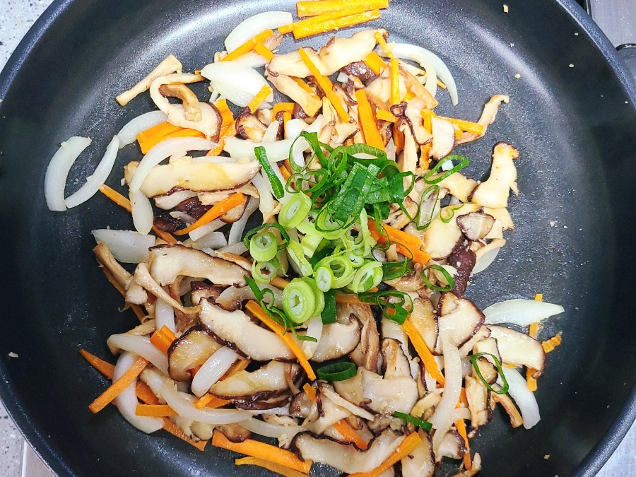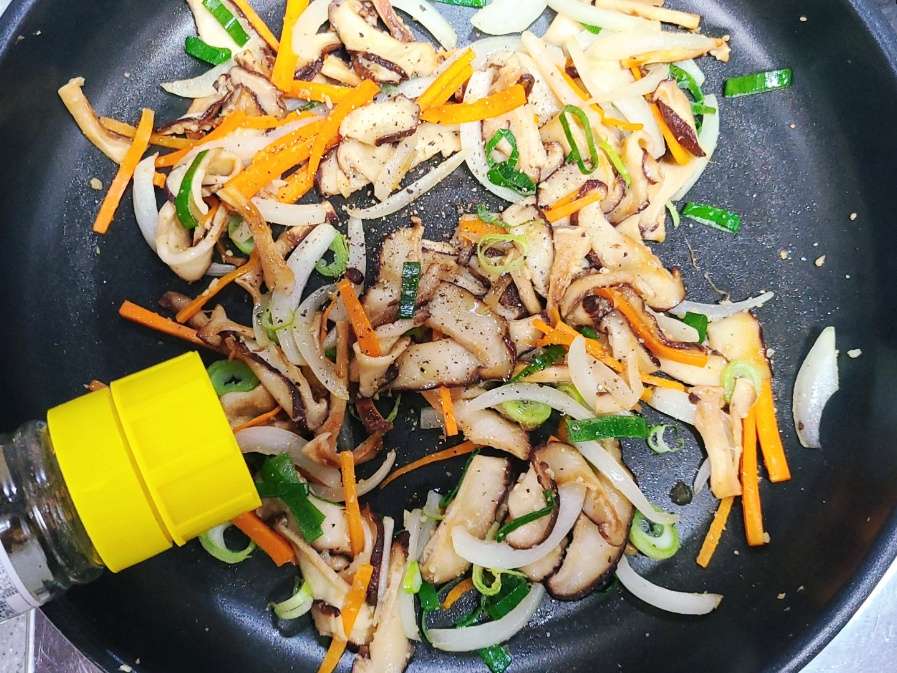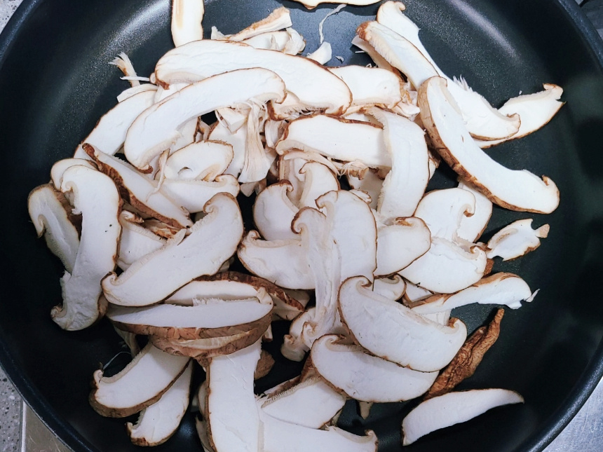 표고버섯 숨이 반 정도 죽을 때까지 볶아주세요.