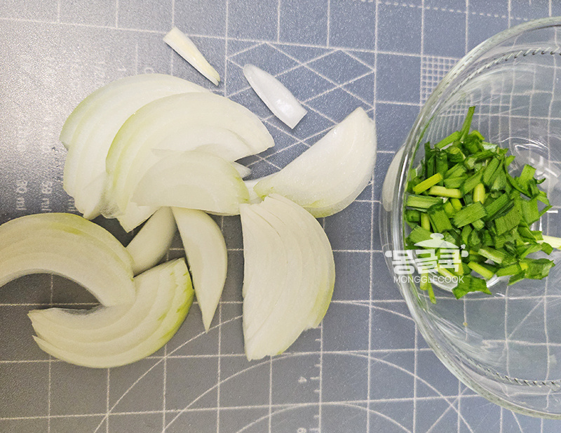 양파 1/4개는 얇게 채 썰어 준비하고,