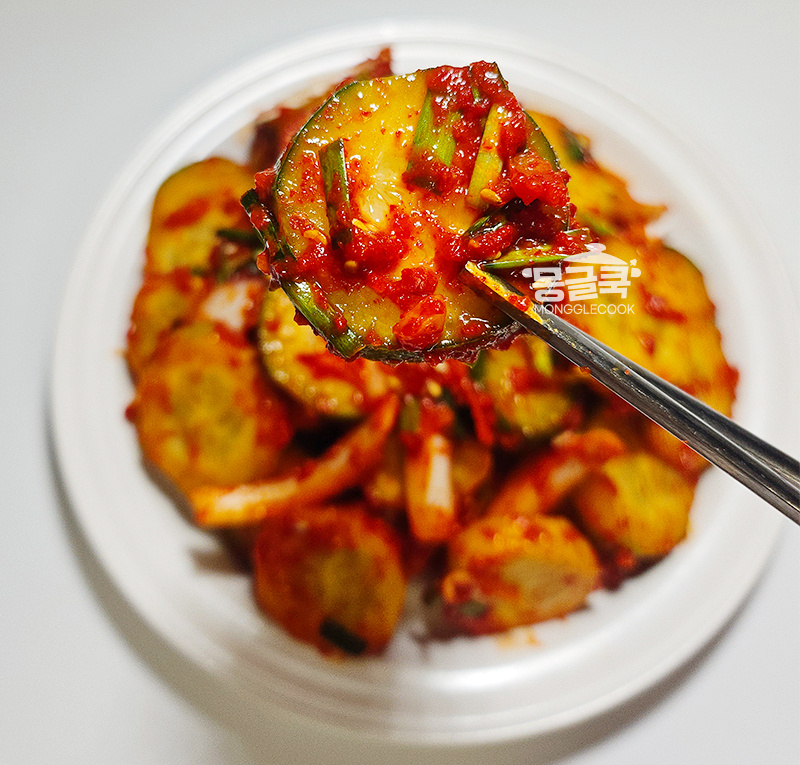 오이를 절이지 않았기 때문에 양념은 평소보다 살짝 간이 센 듯하게 느껴지는 게 좋아요. 오이에서 자연스럽게 수분이 나오며 간이 맞춰져요.