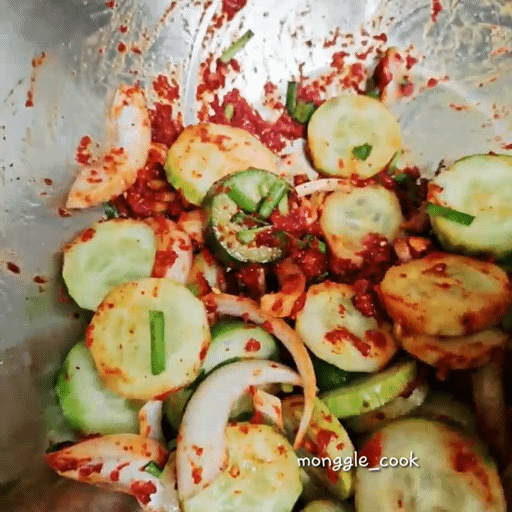오이에 양념이 코팅되듯 빠르게 섞어주세요.
