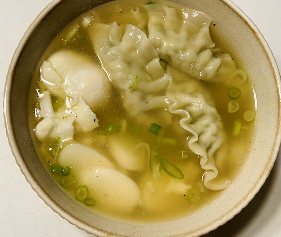 떡만두국에 계란 지단을 곱게 썰어 고명으로 얹어 주면 예쁘지만 간편하게 계란을 넣고 한소끔 끓여 수란처럼 넣고 끓였어요.