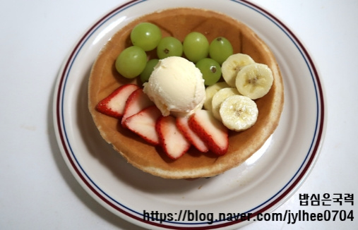 안녕하세요? 밥심은 국력입니다. 따뜻하고 달콤한 크리스마스를 위한 특별한 디저트를 만들어 보았어요. 달콤한 향기로 가득 채워줄 크리스 마스 홈 파티 디저트인데요. 바삭한 와플이 그릇이 되고, 신선한 과일과 시원한 아이스크림이 그 위 를 장식하는 '와플 볼 과일 디저트' 입니다. 간단하면서도 특별한 이 레시피로 소중한 사람들과 함께 달콤한 순간 을 만들어 보세요. 그럼 만들어 볼게요.