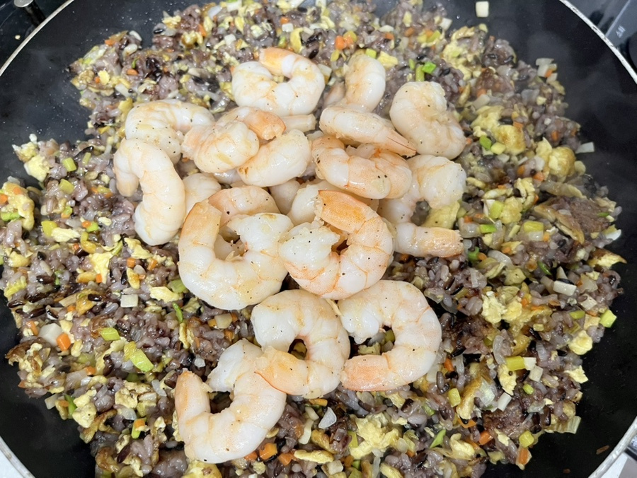 데쳐서 사용해야 새우의 비린맛을 잡아주고 탱글탱글하게 먹을 수 있어요.