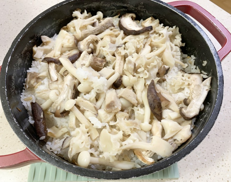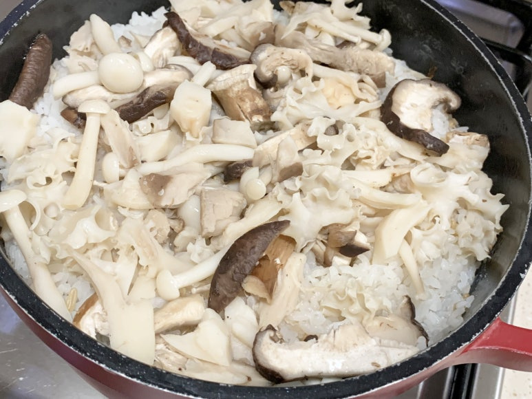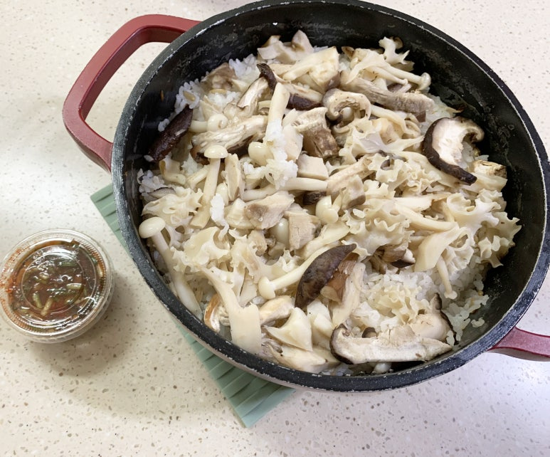 제대로 뜸을 들이게 되면, 쌀도 찰지게 되면서 버섯도 제대로 수분을 입고 익게 됩니다.