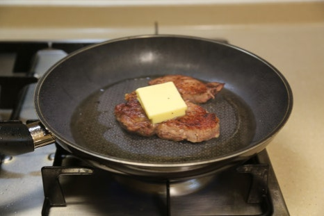 소고기는 달군 팬위에 센불에서 빠르게 익히는 게 포인트다 버터를 올리고 녹은 버터에 다양한 야채를 올려 구워도 좋다