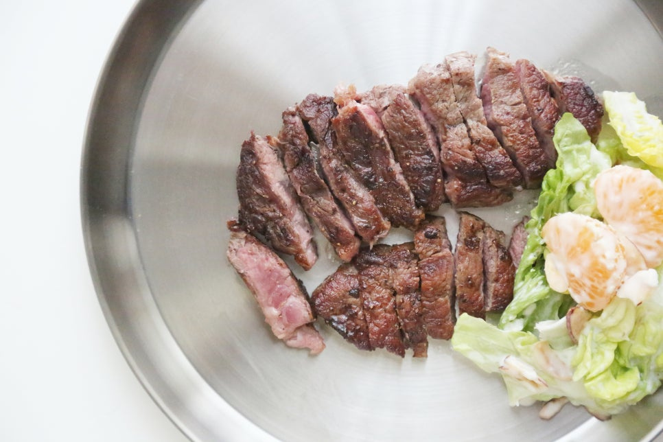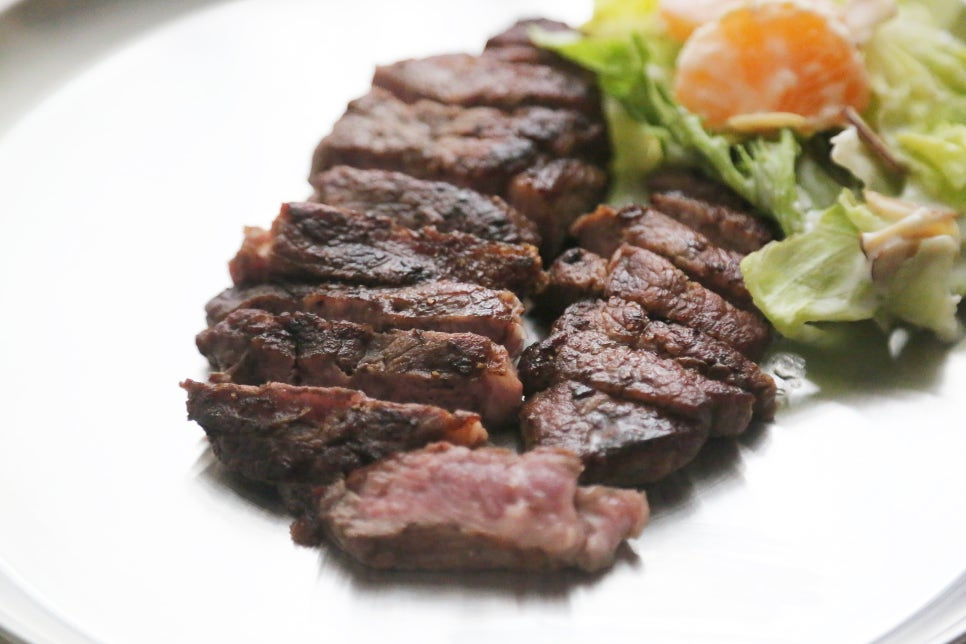 소고기 안심 350g, 올리브오일 1T, 스테이크 솔트&시즈닝 약간