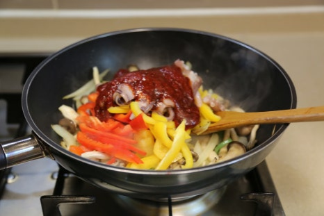 파프리카(노랑, 빨강) 각 1/2개, 오징어 2마리