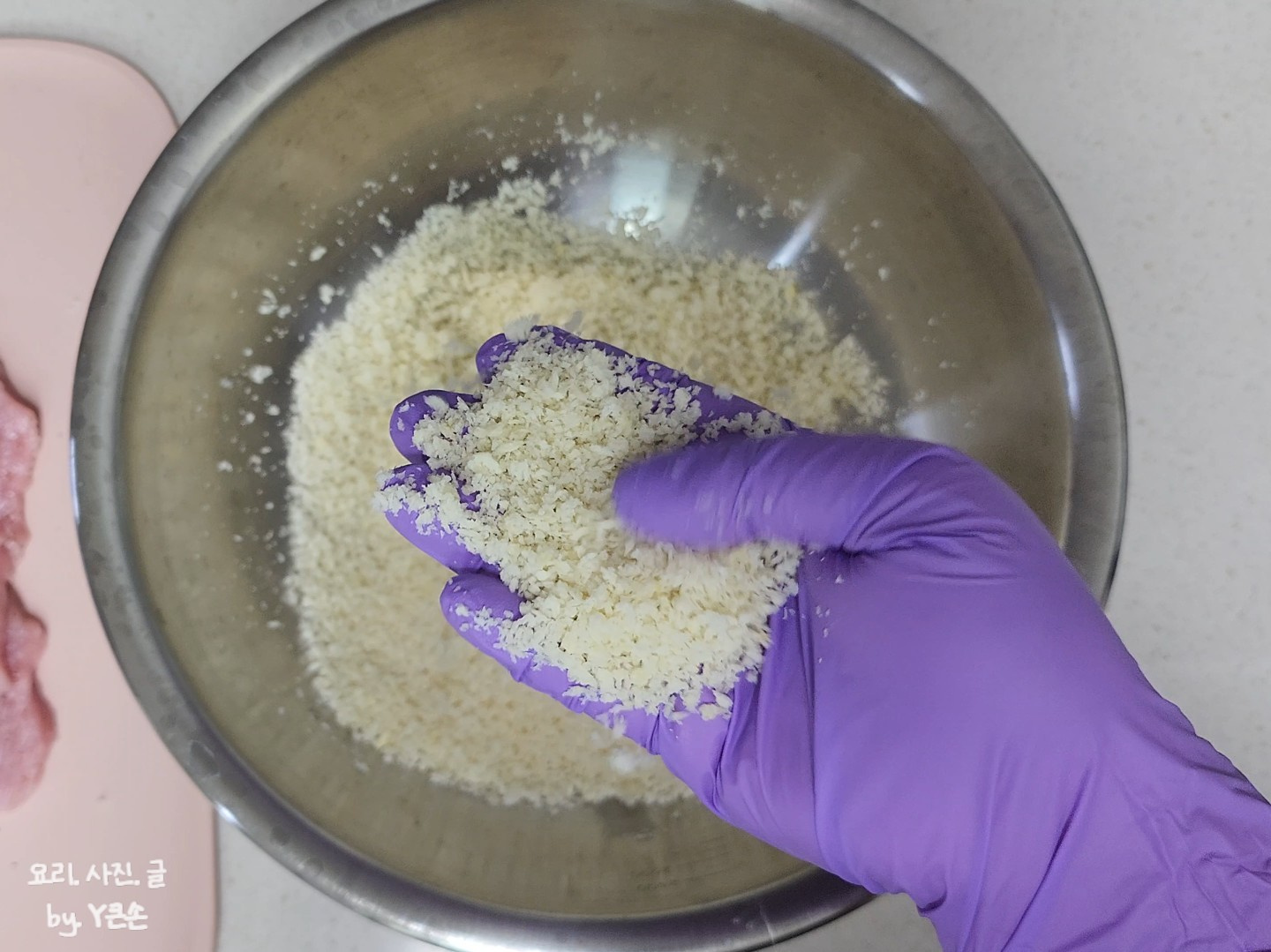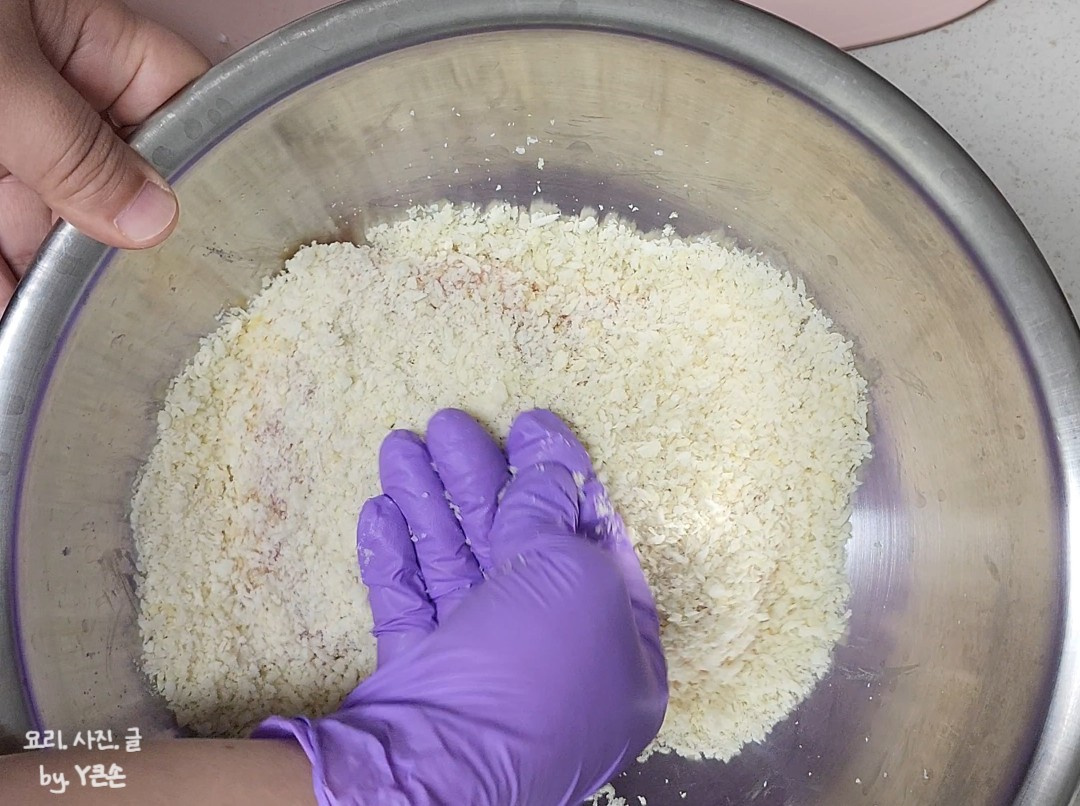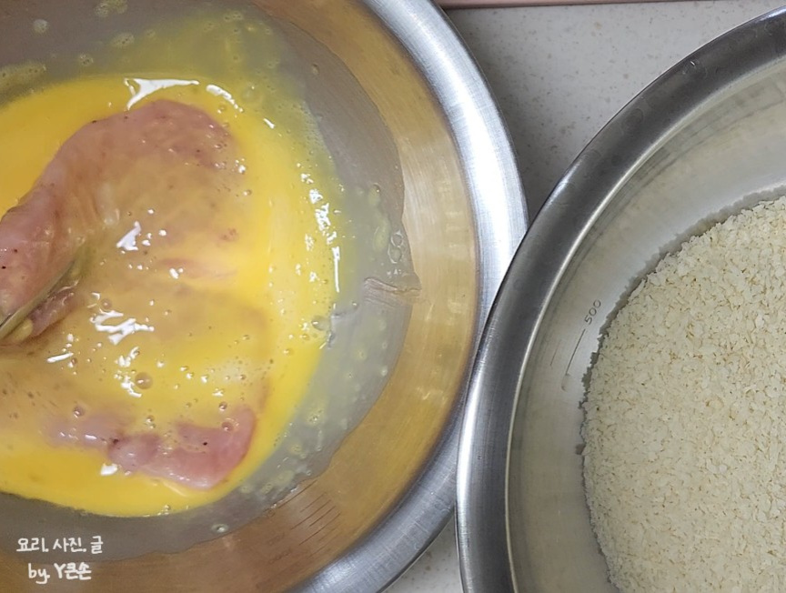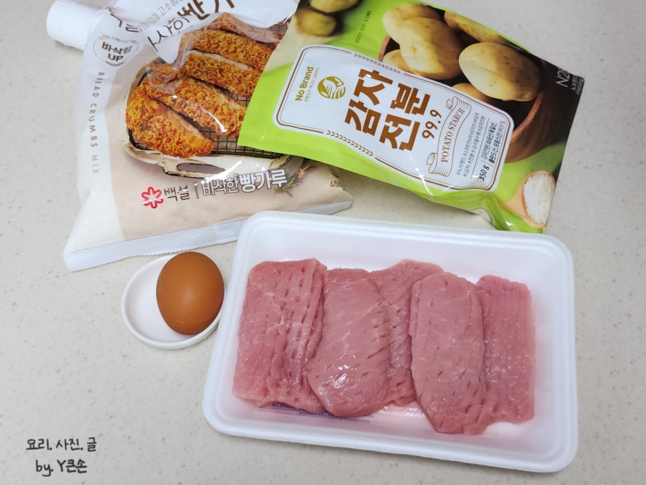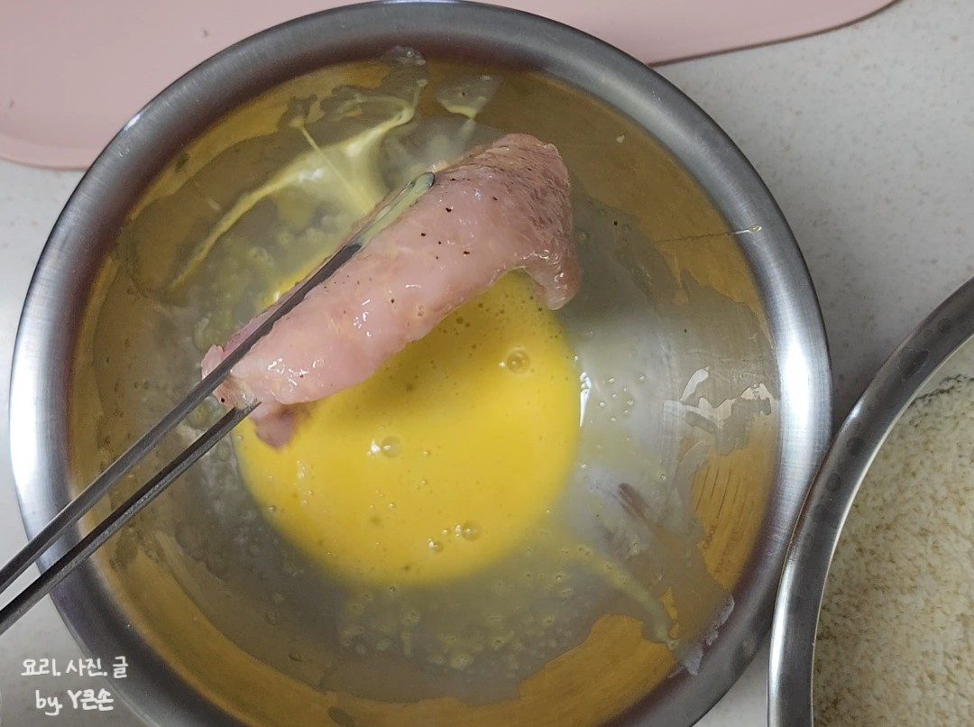 전분이 들어가면 계란 물이 고기에 찰싹 붙어요.