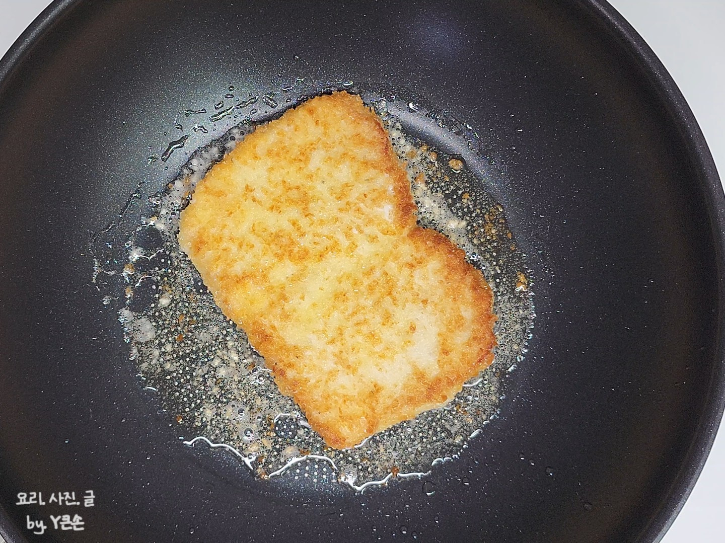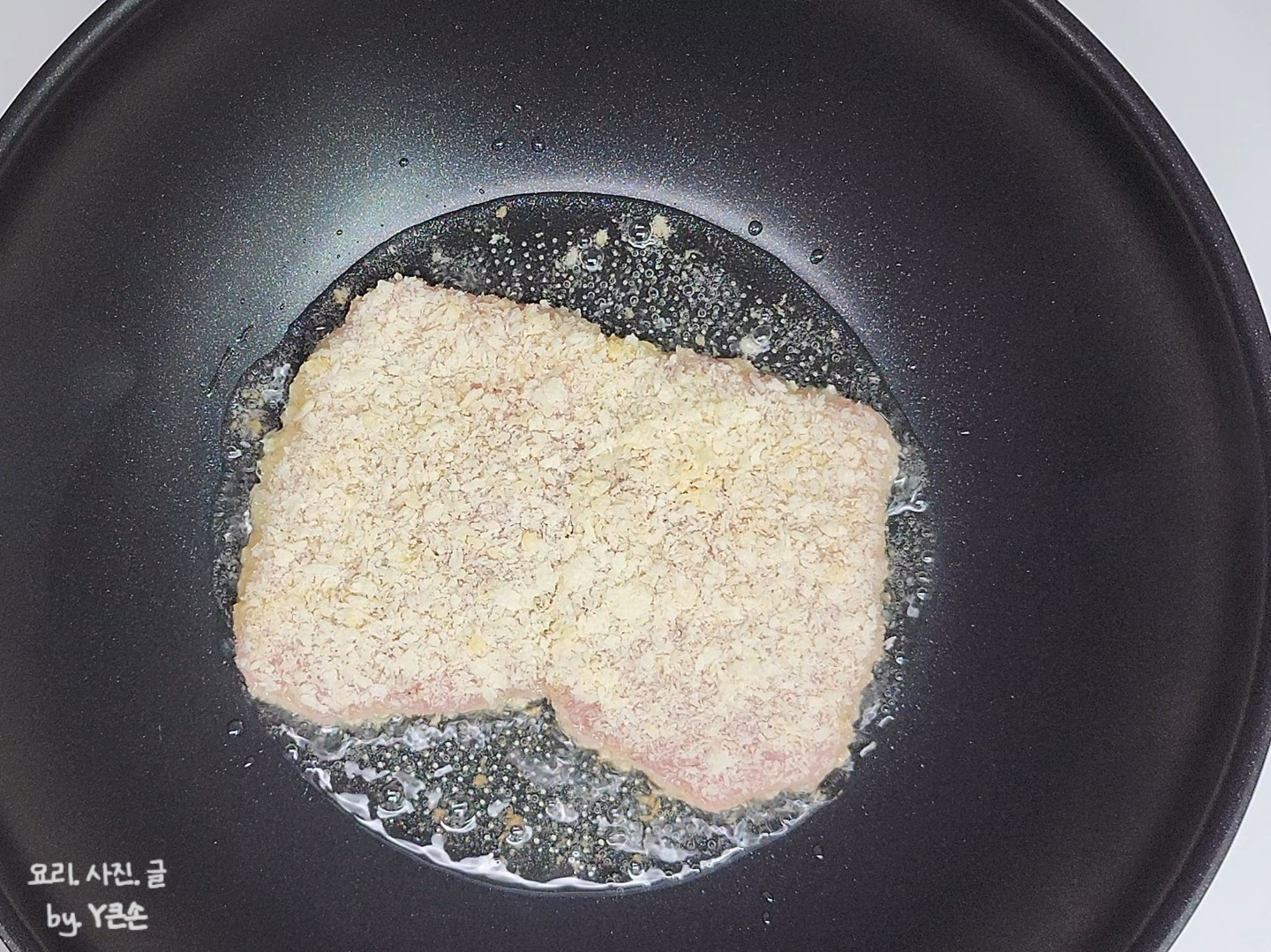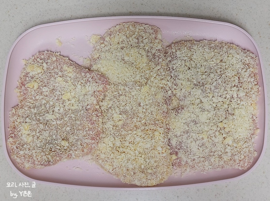 잠시 두셨다가 튀기면 빵가루가 많이 떨어지지 않아 타지 않고 바삭하게 튀길 수 있어요.