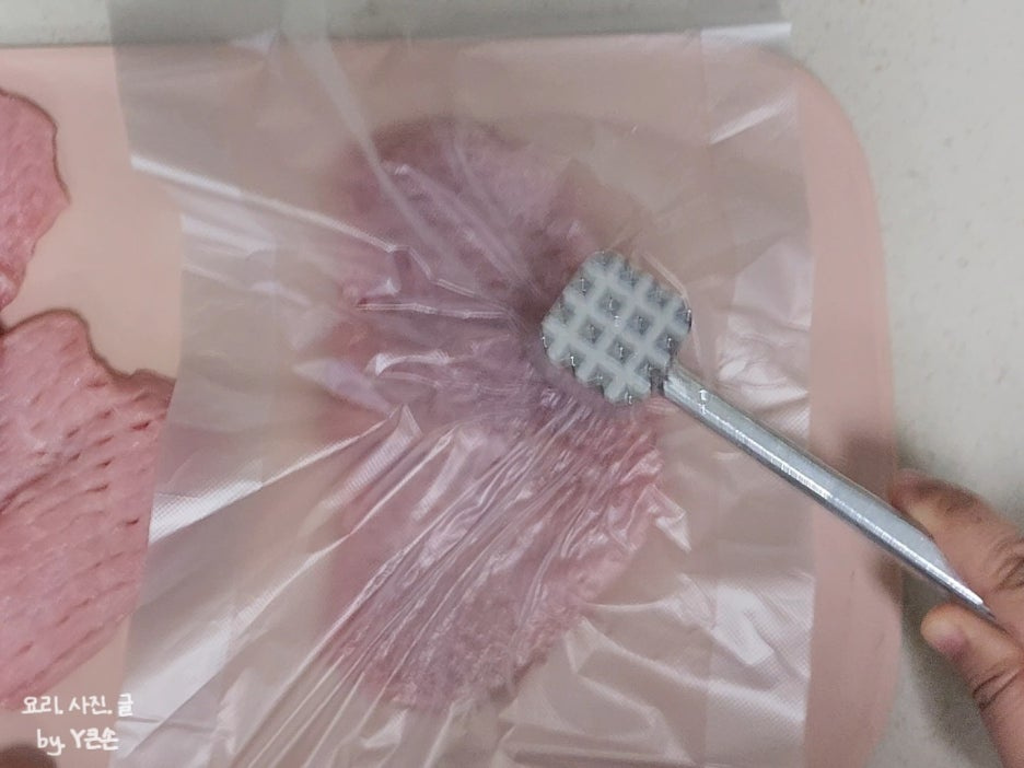 쇳가루가 떨어질 수 있으니 위생 비닐 덮어 두들겨주세요.