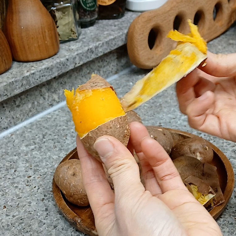 껍질과 고구마 사이에 간격이 생기며 껍질 벗기기도 손쉬워요