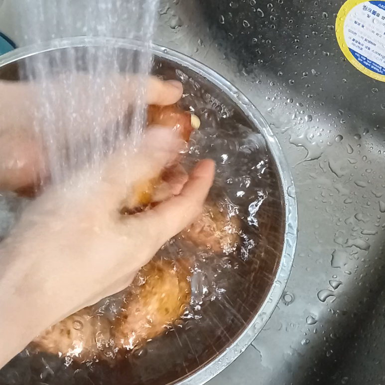 우선 고구마의 겉에 묻은 흙을 깨끗하게 문질러 세척합니다