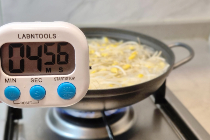 불의 세기나 양에 따라 시간 차이가 날 수 있어요. 끓어오르는 시점 기준으로 중간에 체크해 해주세요. 저는 5분 정도 삶으니 딱 좋았답니다.