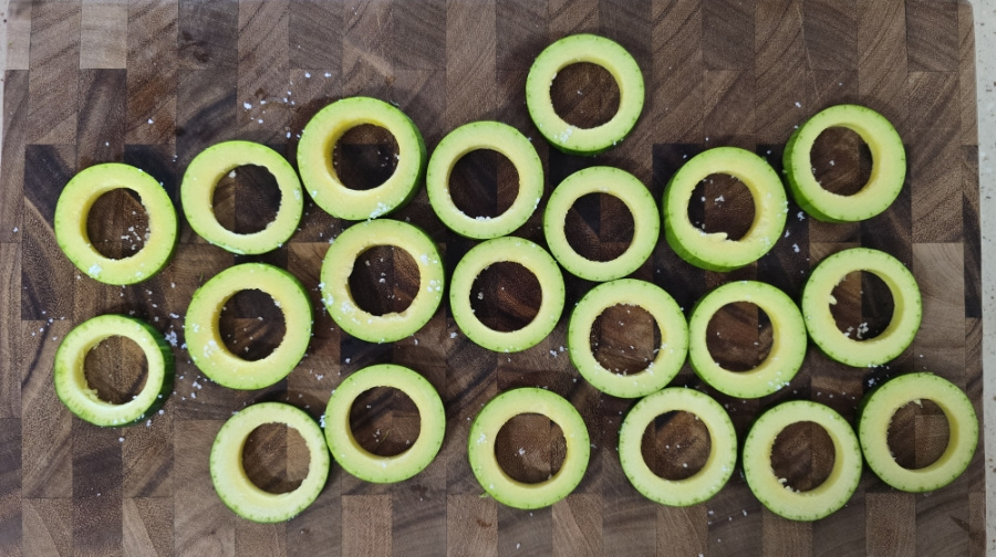 평소처럼 동그랗게 썰고 소금 톡톡. 여기까진 늘 하던 루틴이었죠. 그런데 말이에요, 갑자기 애호박전이 조금 지루해 보이더라고요.