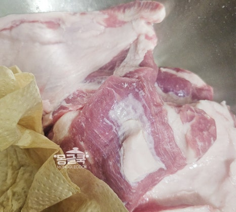 삼겹살의 느끼함은 줄이고, 목살보다 부드러운 식감이라 수육용 고기로 정말 잘 어울리더라고요.