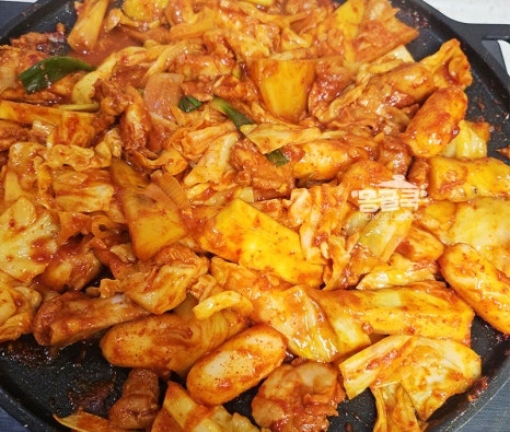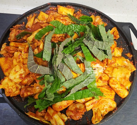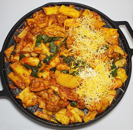 이때 모차렐라 치즈를 올리면 치즈 닭갈비로 변신해요!