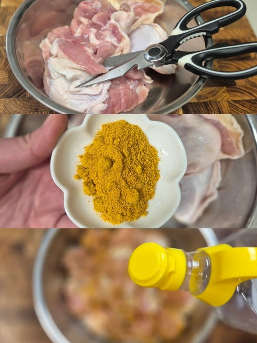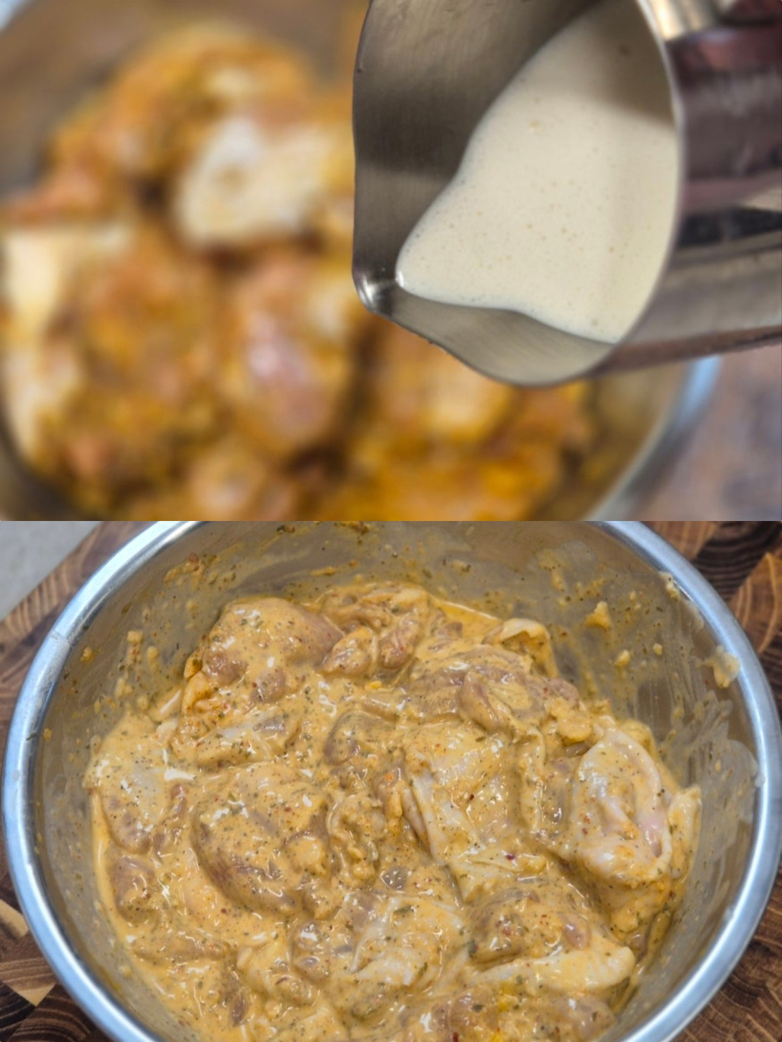 보통 닭 요리할 때 우유에 재워두지만 식초 한 큰술을 잡내는 물론이고 맛 균형이 훨씬 좋아진답니다.
