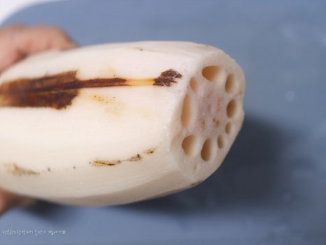 연근 구멍에 수도물 흘려서 안에도 씻고~