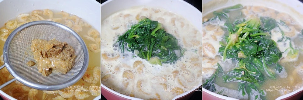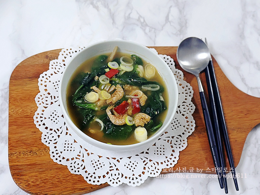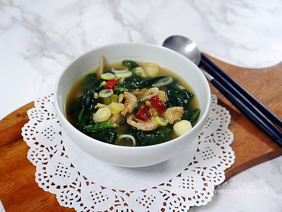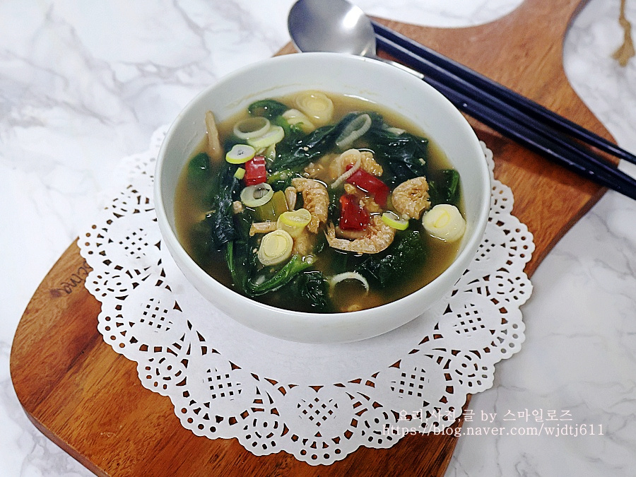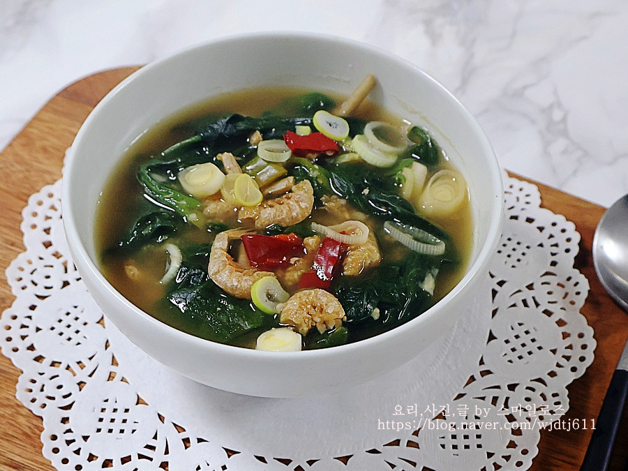 냉동 시금치로 끓인 시금치 된장국 건새우시금치국