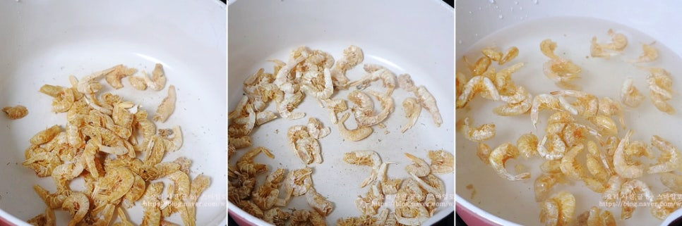 황태 코인 육수 1알과 건새우를 준비했어요