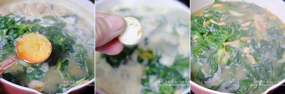 냉동 시금치는 물에 담가 녹여서 국을 끓여도 되지만 물이 끓을 때