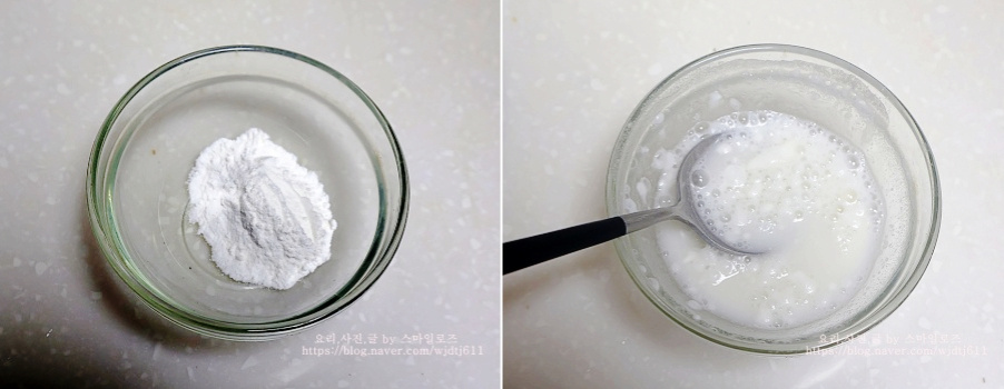 전분가루 1큰술에 물 3큰술 정도 넣고 잘 섞어 놓았다가