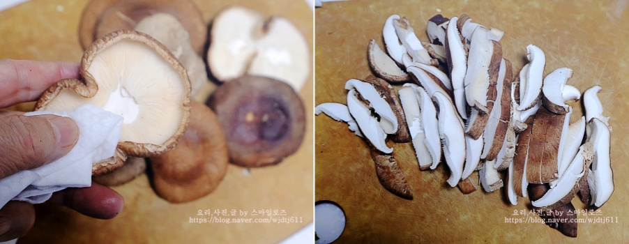 표고버섯은 기둥을 떼어내고 흐르는 물에 빠르게 헹군 뒤