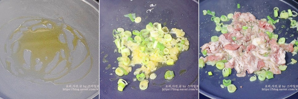 노릇하게 볶은 후 우삼겹을 넣어 볶아줍니다