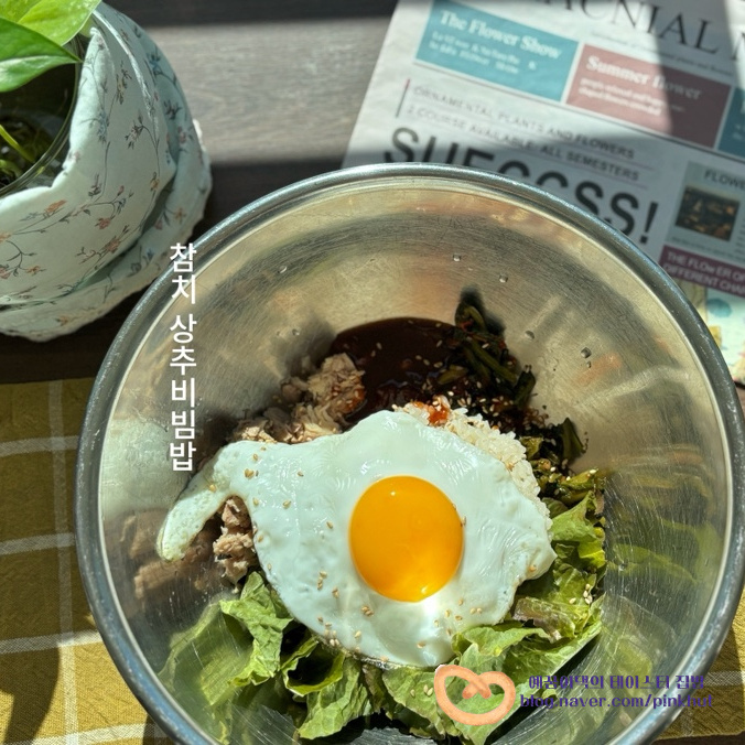 강민경 님의 비빔밥 양념장 레시피는 고추장 1T, 고춧가루 2T, 진간장 2T, 알룰로스 1/2T, 통깨 1T 가 들어갑니다 저희집 김치가 매운 편이라 저는 입맛에 맞게 조절해서 만들어 봤어요. 진간장 양은 줄이고, 올리고당을 넣어주었고요, 건강에 좋은 들기름도 추가했어요