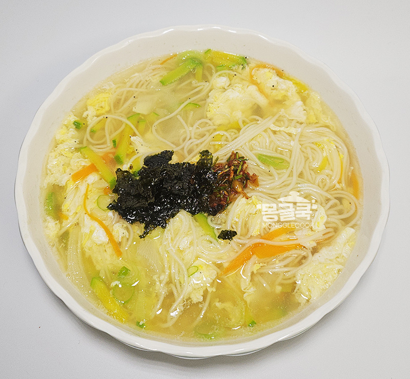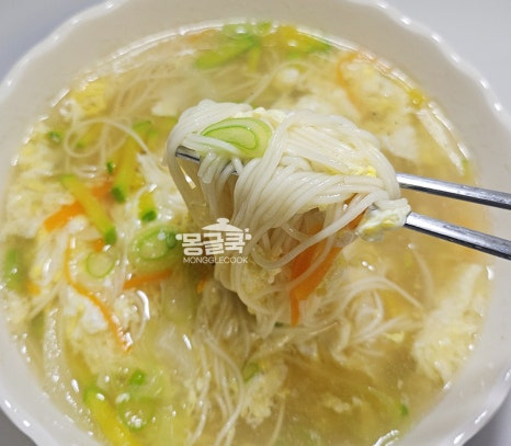계란이 몽글몽글하게 익어 국물이 훨씬 깔끔해져요.