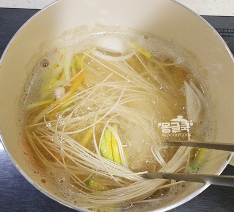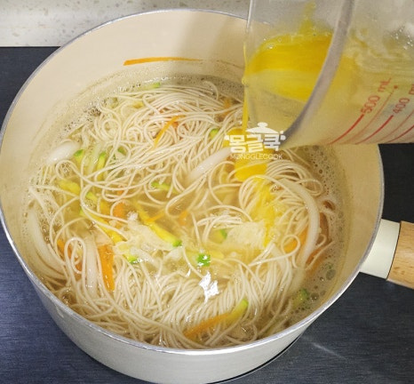 국물이 다시 끓기 시작하면 소면을 그대로 넣어 주세요.
