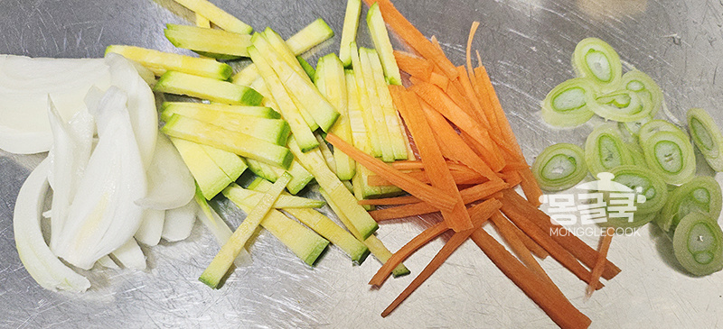 양파, 당근, 애호박은 얇게 채 썰어주고
