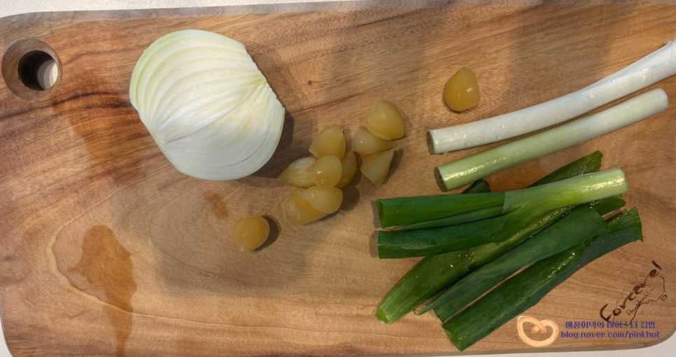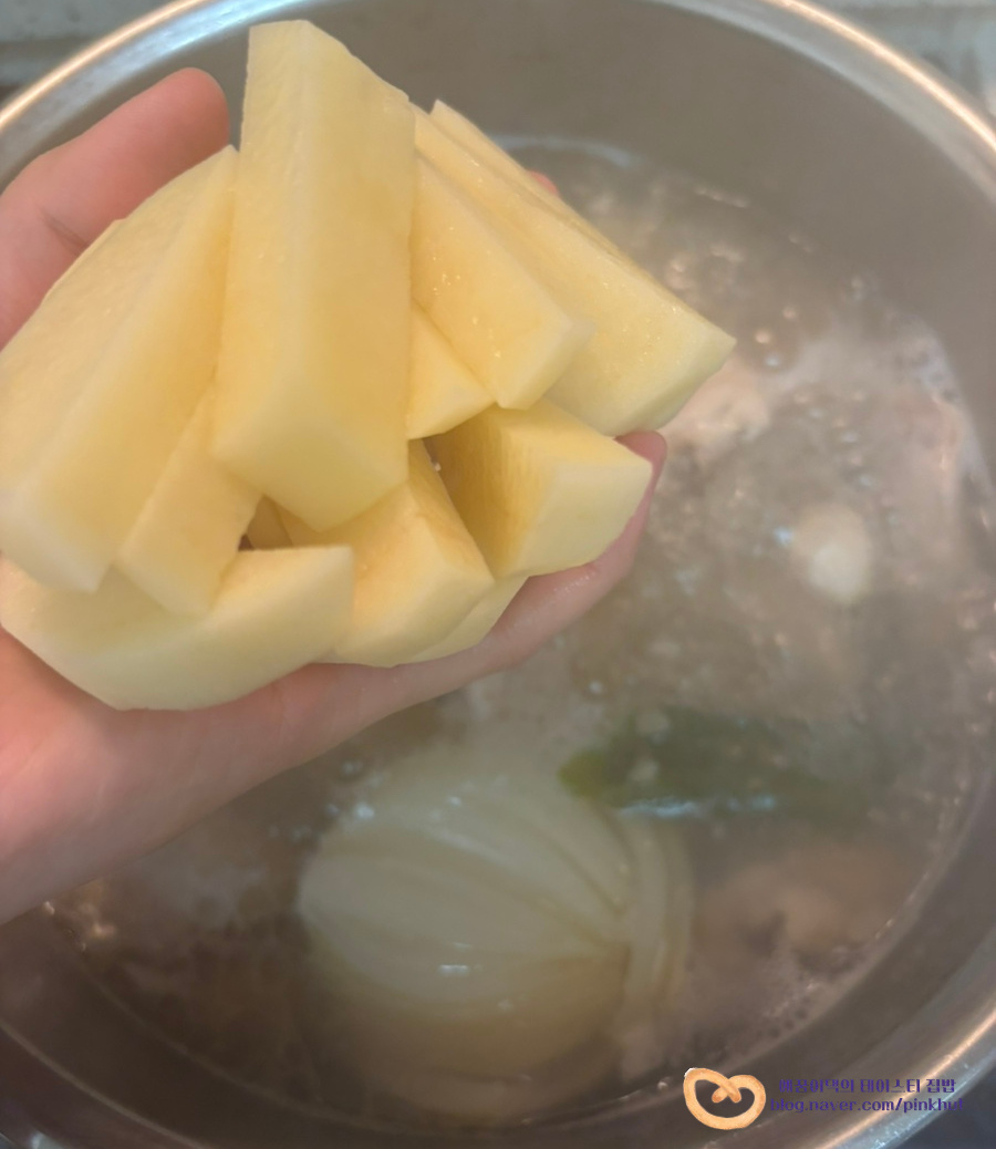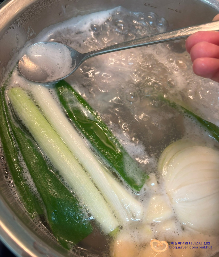 채소들은 나중에 건져낼 거라 삼베주머니 같은 망이 있으면 그 안에 넣어 끓여주셔도 좋아요