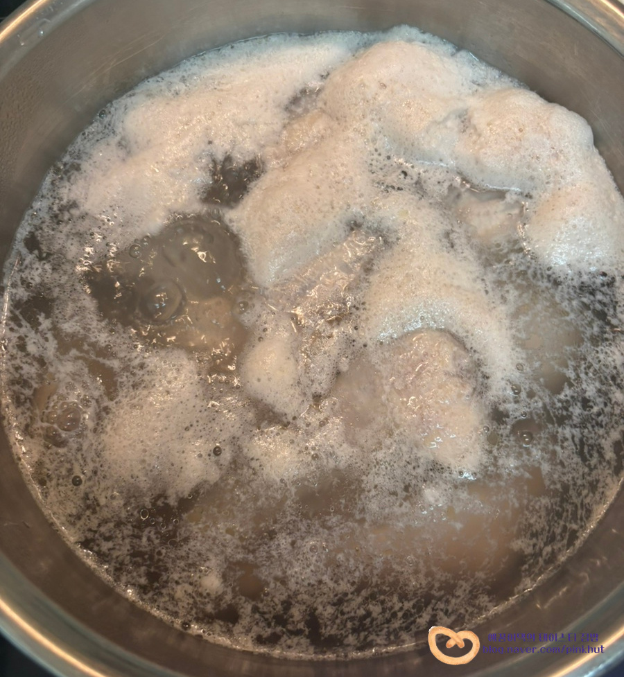 보글보글 끓으면 떠오르는 거품은 걷어내어 주세요.