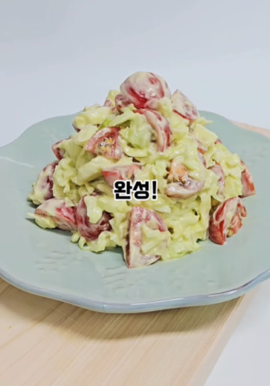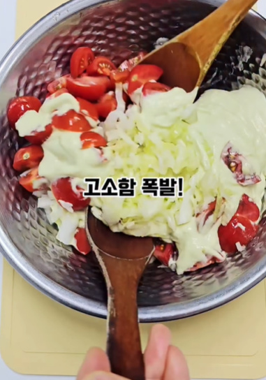 양배추는 물기 꼭 짜주고 양파, 방울토마토, 아보카도 소스 넣고 섞어주면 완성!