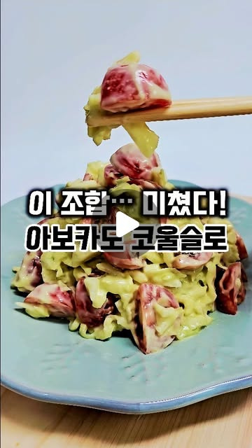 아보카도를 활용한 상큼하고 건강한 코울슬로 레시피로, 양배추와 다양한 재료가 어우러져 맛을 더합니다.
