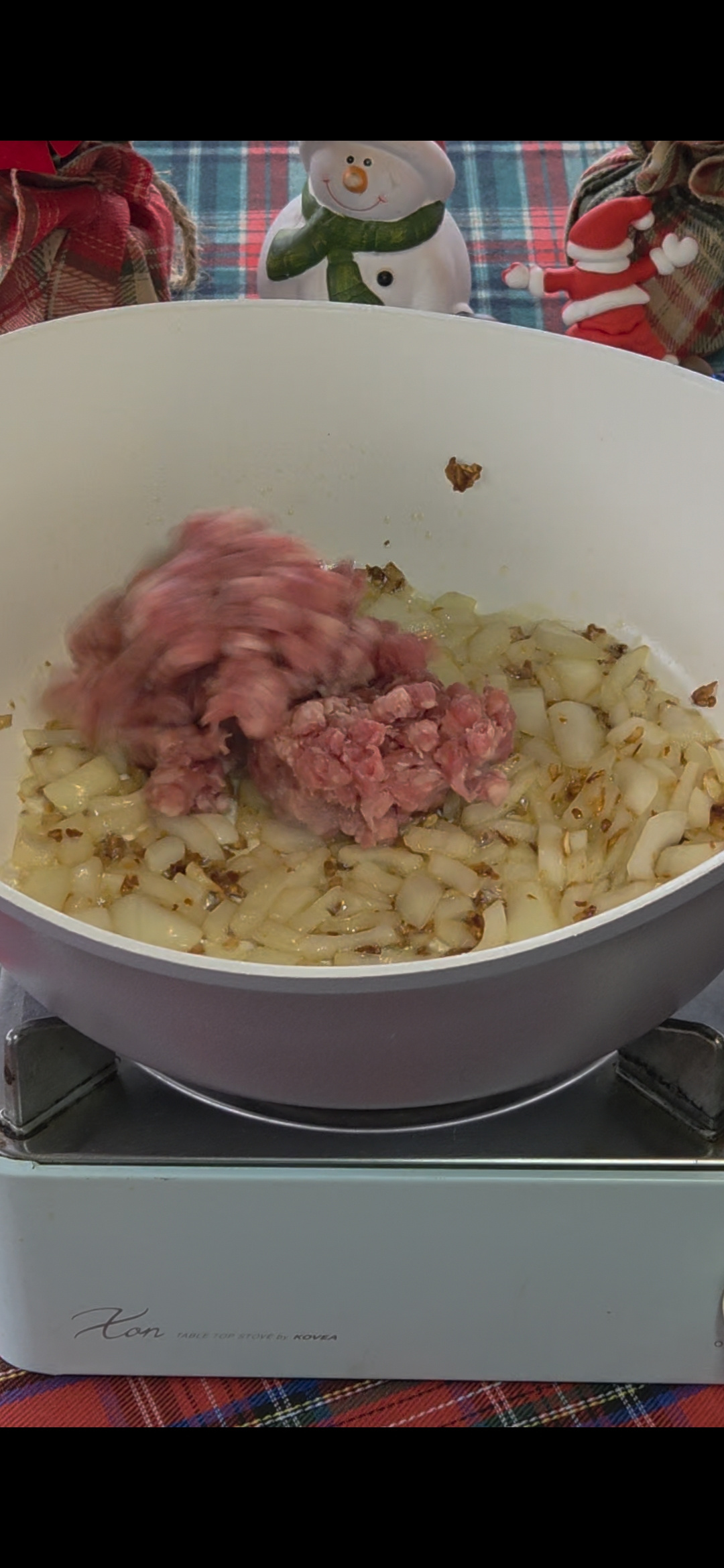 • 소고기 다짐육을 넣어 같이 익혀주세요.